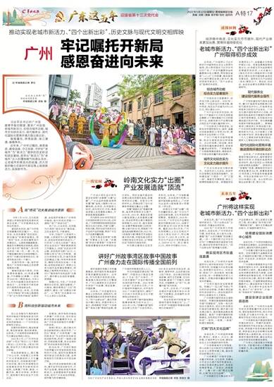 近年来,广州坚持以习近平新时代中国特色社会主义思想为指导,深入贯彻落实习近平总书记对广东、广州系列重要讲话和重要指示批示精神,贯彻落实省委“1+1+9”工作部署,推动国家中心城市建设全面上新水平,推动老城市新活力、“四个出新出彩”取得初步成效。