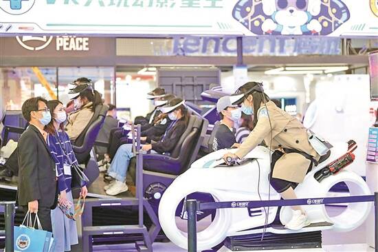 2021广州文化产业交易会上,年轻人在幻影星空VR主题乐园展区体验 羊城晚报记者 邓勃 曾育文 摄