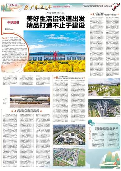 作为一家铁道兵集体转业的企业,中铁建设积极践行“交通强国,铁路先行”战略,素有“中国铁路站房建设主力军”的称号。广东的铁路建设,在“十三五”至“十四五”阶段,经历了“完善网络补齐短板”的过程。中铁建设做好“老本行”,过去五年积极参与广东的铁路建设,让群众对美好生活的向往,从铁道出发。
