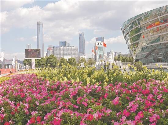 在黄旗山南麓山脚下,山水相依,百花盛开。山坡上,百花间,随处可见休闲、散步、游玩的市民。这是东莞推进中心城区“一心两轴三片区”建设,着力提升城市品质和城市内涵带给市民的新收获,让广大市民在中心区就能尽享山水惬意。