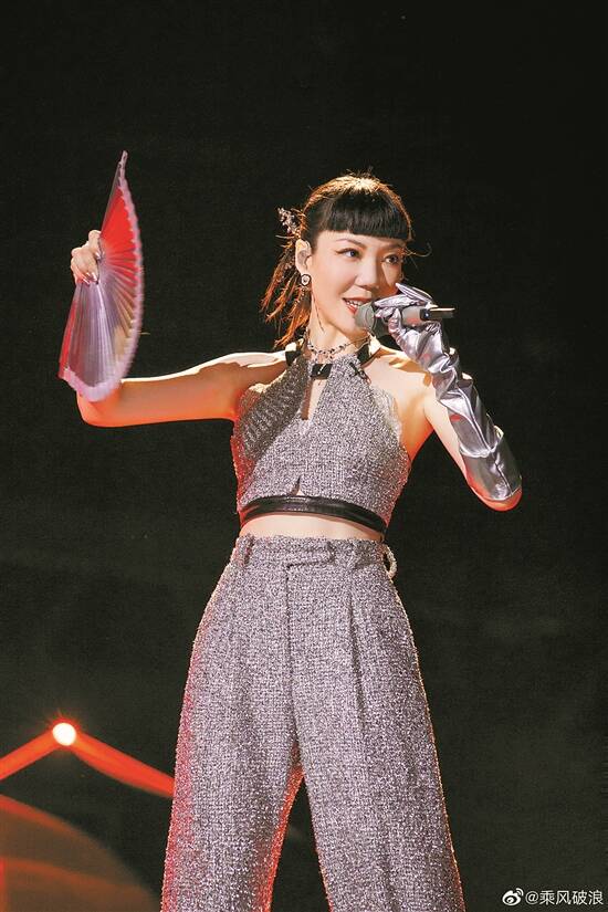 胡杏儿则以“黑衣+黑超”的酷飒造型,演绎了自己20年前首次担当女主角的电视剧《冲上云霄》的主题曲《岁月如歌》,十足港味扑面而来。