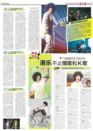 最近,曾比特接受羊城晚报报业集团邀约,参加“UP在湾区·港见粤闻学非遗品粤菜”系列短视频拍摄,来到肇庆学习包裹蒸粽和端砚雕刻。在拍摄间隙,他接受了羊城晚报记者独家专访。谈到当下的香港流行乐坛,曾比特充满了希望:“我觉得广东歌现在越来越百花齐放了。要靠我们这一代歌手的努力,做更多不同类型的音乐,让观众看到广东歌的不同面貌——广东歌真的不只有情歌和K歌。”