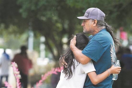 美国得州罗布小学枪击案幸存学生与家长拥抱 图/人民视觉