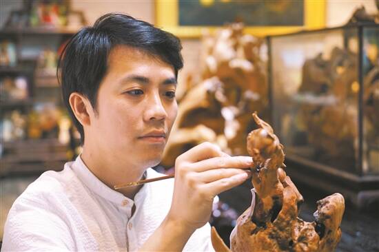 当下,我们一直在思考如何把传统的东西通过艺术转换,满足现代年轻人的需求。我们应当顺应当下年轻人的审美方向,在保留传统韵味的前提下,做出线条更简约、形式更轻巧的作品。在过去的木雕创作中,是没有这样的挂件的。但只有让更多年轻人能近距离接触到木雕作品,才能让他们对木雕有更多了解,从而让非遗年轻化,并形成属于这个时代的不一样的文化符号。
