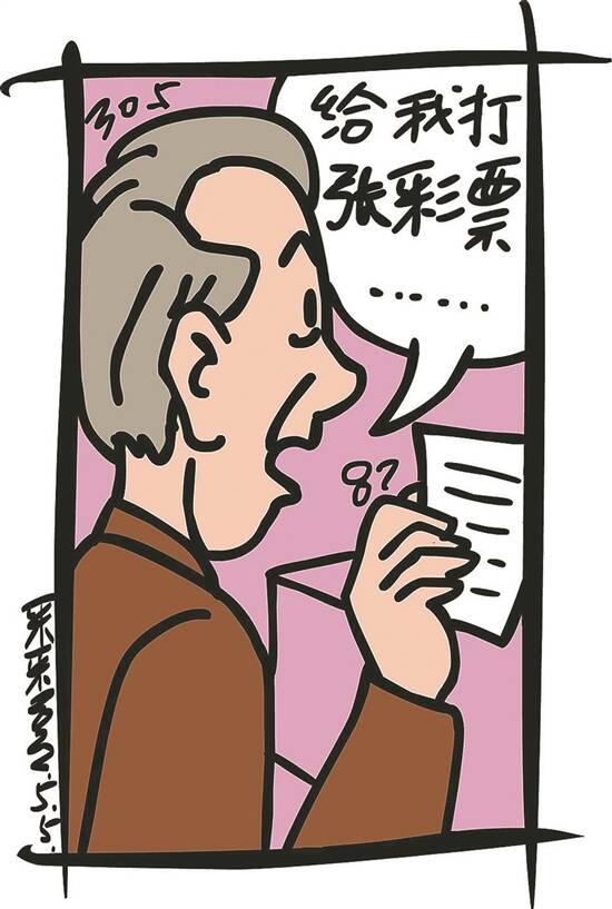 老人进来环视了一下小店,之后从上衣口袋里摸出一张泛黄且很旧的彩票过来递给老张说:“给我打张彩票,就照这张彩票上的数字打。”老张接过彩票看了一眼,旧彩票上是一组“双色球”号码。老张冲着老人点头笑了笑,照着旧彩票上的数字为老人打出一张新票,之后双手把新旧两张彩票递给老人说:“您拿好,祝您中奖!”