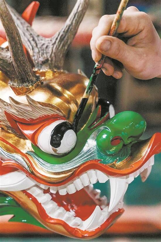 “每次接到订单时,我首先要做的不是雕刻,而是去实地考察,了解村子的历史文化。我会让村民都参与进来,尤其是年轻人,让他们提出龙头的一些制作想法,综合他们的意见制作。一个龙舟龙头可能要用上几十年上百年,村民参与制作的同时,也了解了自己的村史文化,增加了文化自豪感。这样的龙头是特别有温度的,有故事的。”张伟潮说。
