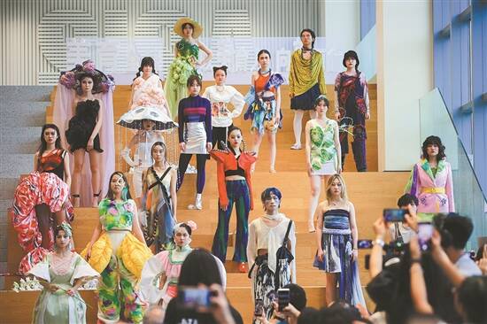 时间轴推至傍晚时分,“第三种语言”为主题的SISA首届时装秀缓缓拉开序幕,为大家献上了一场精彩绝伦的视觉盛宴。辰美师生团队精打细磨,自编自导自演,当模特穿着一件件堪称艺术品的衣服徐徐走来时,全场观众屏息凝气,无不被辰美学子展现出的非凡风采所吸引与震撼。