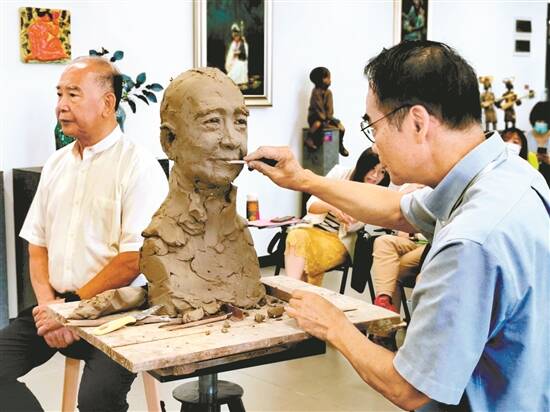国际著名雕塑家吴信坤现场为教育名家吴颖民创作个人雕像