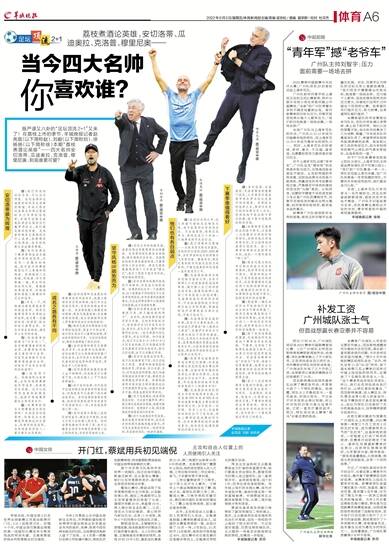 既严谨又八卦的“足坛顶流2+1”又来了!在荔枝上市的季节,羊城晚报记者赵亮晨(以下简称赵)、刘毅(以下简称刘)、徐扬扬(以下简称徐)本期“荔枝煮酒论英雄”——四大名帅安切洛蒂、瓜迪奥拉、克洛普、穆里尼奥,到底谁更可爱?