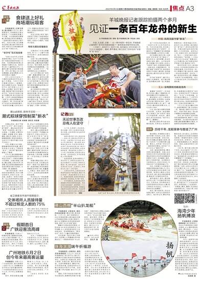 二月初二,龙舟开工;四月十四,龙舟骏水(详见本报5月15日A1版报道)。期间,季节更迭,我们见证了百年龙舟“东坡号”的“新生”。