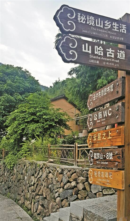 以前,戴家山村年轻一辈都进城务工去了,只有少数老人留守,这里是名副其实的“空心村”。如今的戴家山村,有通往乡里县城的柏油马路,有为村民特别是孩子们假期回乡阅读方便而设的图书馆,有适应游客需求的几家星级酒店标准的民宿,还有了惬意的咖啡厅、书店和游泳池。不少人看到家乡发展的前景,都陆续回村办民宿、小餐馆、土特产店,与外来的文创产业同步互补,共同振兴。