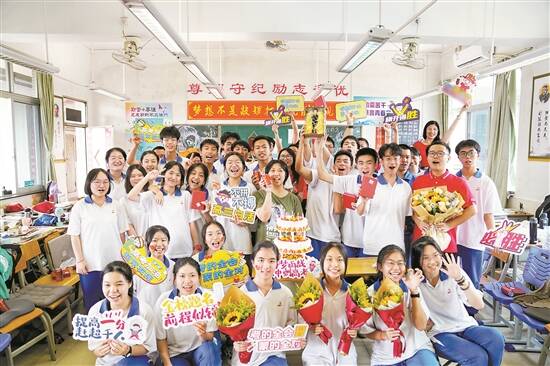 高考前一天,广州大学附属中学高三年级迎来最后一课。师生们回望过往、展望未来,为高考加油打气 羊城晚报记者 宋金峪 摄