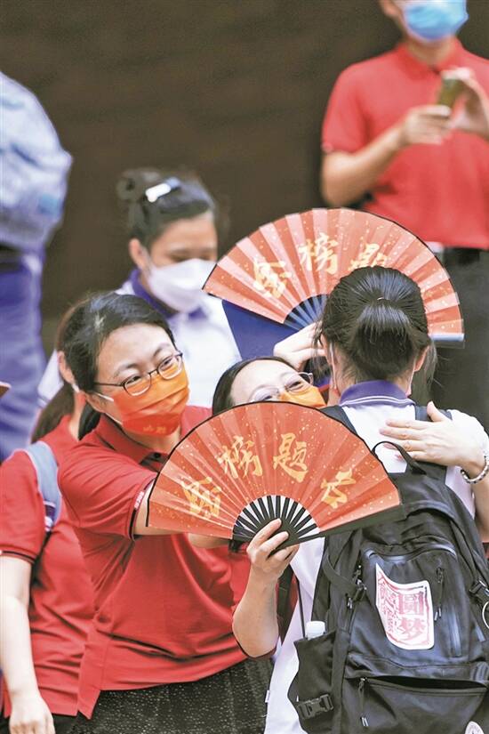 老师与学生相拥,祝福“金榜题名” 羊城晚报记者 周巍 摄