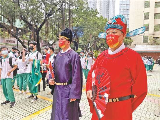 家长身着状元服助阵 羊城晚报记者 宋金峪 摄