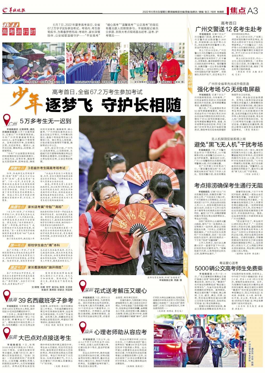 广州交警送12名考生赴考