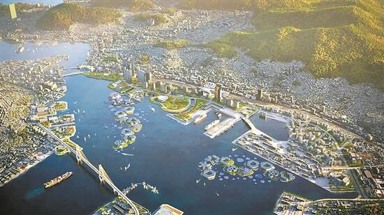 联合国人居署和科技公司Oceanix公司联合公布的这个名为“海上釜山”(OCEANIX Busan)的城市示范模型,选址韩国釜山,预计2025年建成,建筑成本估计在2亿美元左右。如果能及时建成,它将成为全球首个“漂浮城市”。