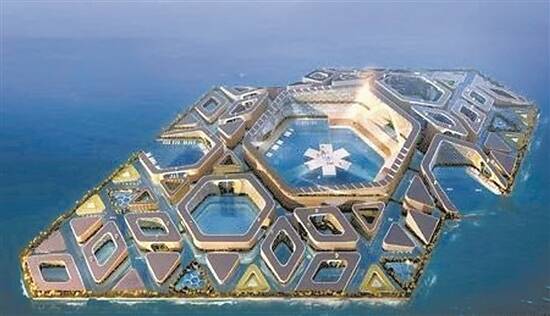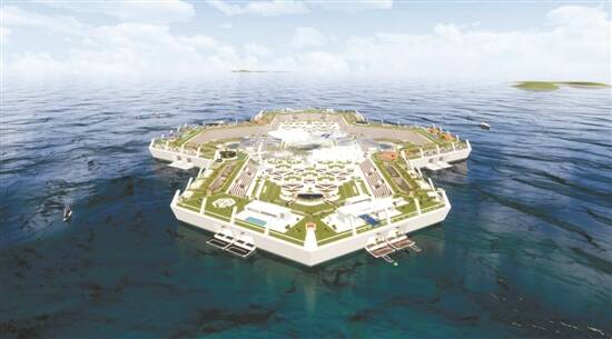 这座“漂浮城市”如果建成,估计占地4平方英里(约10平方千米),采用水上水下多层设计,拥有一套完全自给自足的生态系统。除了住宅、娱乐场所的种种配套设施,这里还包括垂直农场和海产类孵化场,可自产自销、自给自足,并实现能源的循环利用。