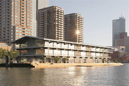 2021年底已建好的全球适应中心漂浮办公楼就位于荷兰鹿特丹的莱茵港里,它由国际建筑实践公司Powerhouse Company打造,是一座兼顾实用性和趣味性的漂浮建筑。