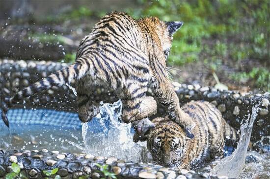 作为华南虎故乡的韶关,在繁育保护华南虎工作中取得了卓越的成绩,已成为我国华南虎繁育和种群发展研究的重要基地。雷胜桥充满期待地表示,预计今年的下半年有两只母虎会进行繁殖配对,一只是“美美”,它是2019年出生的,到今年7月份就满3周岁,可以进入到繁殖配对阶段;还有一只是“梦梦”,它是刚生完一对双胞胎的母亲,目前还在调理阶段,预计今年4月就可以恢复最佳状态。“当然这是我们的设想,这其中还有许多不确定因素,但我们会尽最大的努力,在保证华南虎健康、安全的前提下,让它们繁殖后代,为华南虎种群发展贡献力量。”