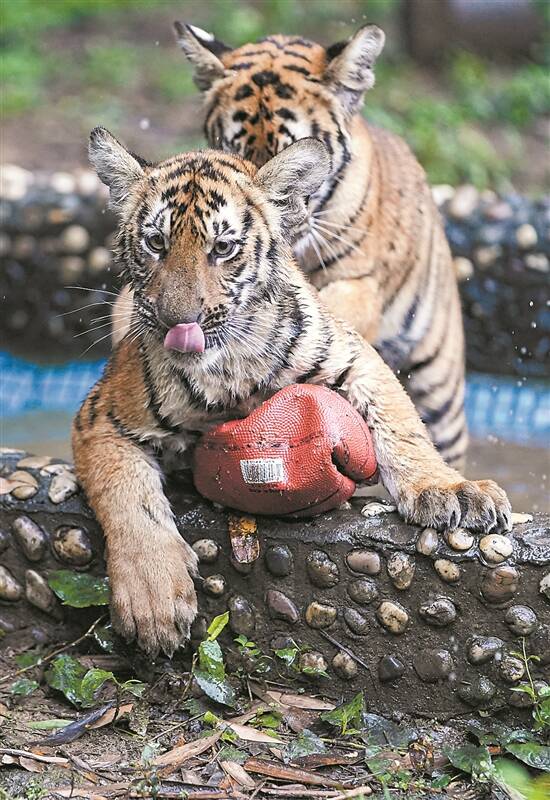 “芙蓉”和““莲花”活泼好动,它们的健康成长是饲养员的心愿