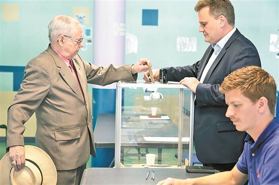 12日,法国北部城市埃南-博蒙的市民在投票站投票 新华社发