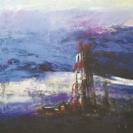 港珠澳大桥——海中的构成系列之三十三(油画)