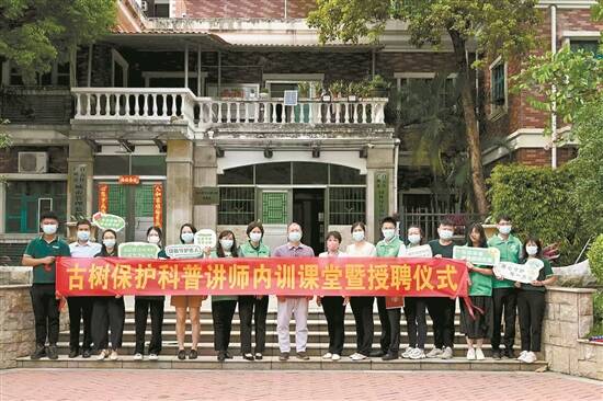 在培训会现场,主办方为首批12名“古树保护科普讲师”授予荣誉聘书。据了解,这一志愿者讲师群体既有广东各高校的副教授、园林专业老师,也有植物科普讲师、园林专业在读研究生。他们将定期走进社区,组织相关的古树保护普及课程,将“绿色守护者”的价值观和“古树名木”相关的故事与知识传播给市民,广泛动员市民群众积极参与保护古树。