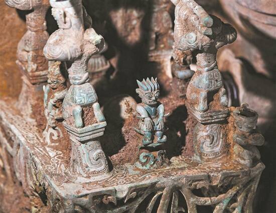 三星堆遗址8号“祭祀坑”拍摄的铜神坛局部 新华社发