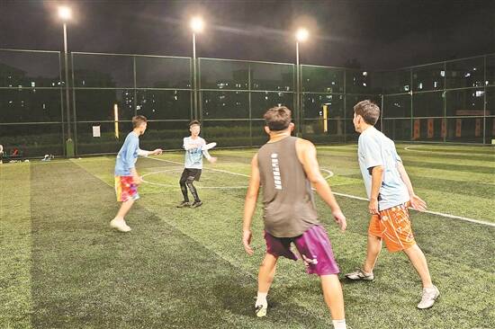 “规则其实是很简单的。飞盘运动是在长方形的场地上展开,场地两端有类似于橄榄球的达阵区,在达阵区内接到队友传的飞盘就可以得分。”景浩告诉记者,飞盘运动没有裁判,没有身体接触,玩家需要熟知规则,遇到问题相互沟通。在他看来,正是这样友好友善的运动氛围和“飞盘精神”,赋予了这项运动独特的魅力。
