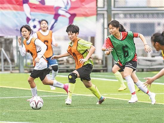 在首日的夏令营活动中,分别进行了高中男子甲组、乙组,高中女子甲组和乙组的对抗赛,所有参营运动员以混编方式参加11人制的对抗赛。来自广州市的30名高中组运动员完成亮相,其中广州市第五中学8人入选,广州市培正中学5人入选,两所足球特色学校长期深耕校园足球,专注足球运动在校园的普及和推广,如今已硕果累累。羊城小将们与省内青少年足球精英同场竞技,尽情挥洒汗水,激情演绎青春热浪,完美呈现了广州市校园足球的竞技水平和良好风貌。