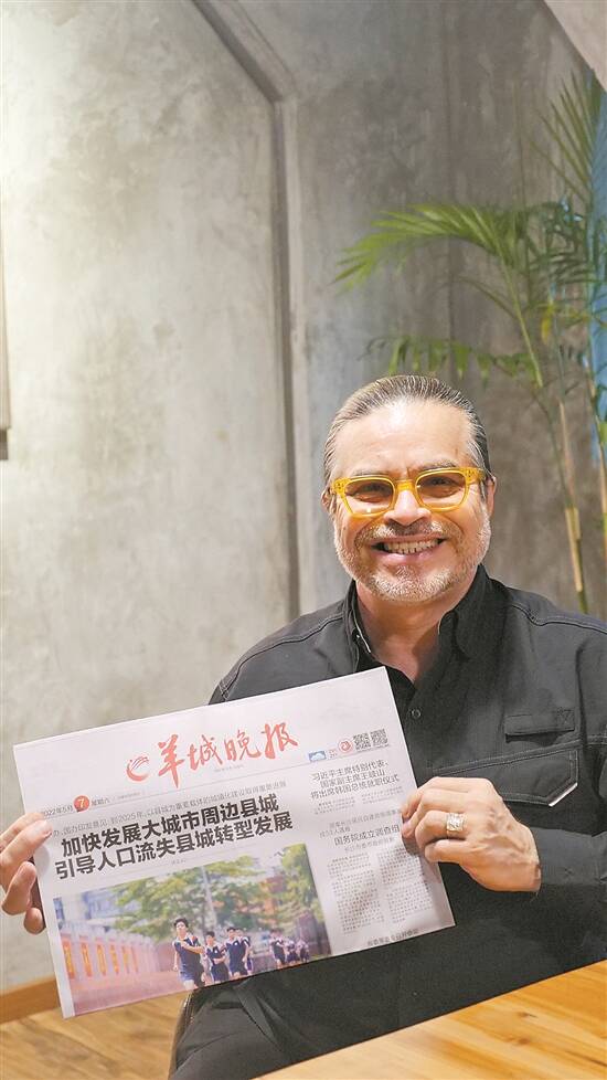 亚历山大·劳埃德很喜欢广州,尤其钟爱粤剧,采访中,他拿起《羊城晚报》来了张热情的合照