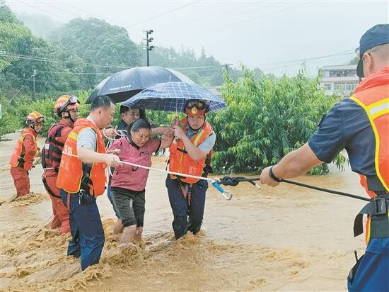 河源市连平县上坪镇小水村,消防救援人员救出被困群众 通讯员 粤消宣 供图