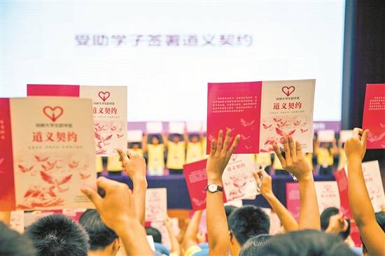 “受惠社会,回报社会,让爱薪火相传”,是仲明学子铭记于心的公益理念。25年来,仲明通过“道义契约”的模式促进了公益的良性循环,让慈善没有终点,让爱心可持续。在仲明学子的带头下,仲明志愿者服务队和仲明助学志愿服务促进会先后成立,给予学生物质和精神上的双重帮助。