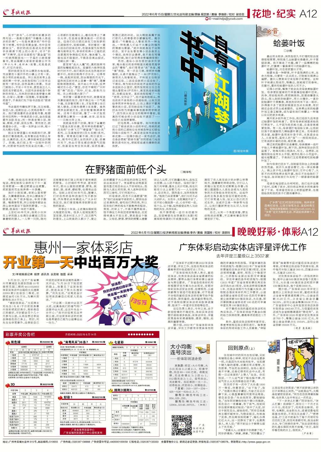 第A12版:花地·纪实;晚晚好彩·体彩;广告