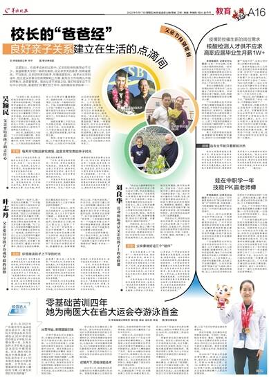 叶志丹谈起女儿,各种优点如数家珍,让他特别感动的是,女儿从5岁开始学习舞蹈,一直跳到高二,坚持了12年。中途有两次想放弃,但他都动之以情,晓之以理让女儿坚持了下来。“女儿初二时突然有一天说不想跳舞了。原来是因为每天放学后练舞占据了太多时间,她没空参加学校的社团了。我告诉她,跳舞不仅仅是因为特长生进来广东实验中学要回报学校,更重要的是,做事情要持之以恒,不能半途而废。”叶志丹说,当时苦口婆心劝女儿坚持跳舞,确实也心疼她,但作为父亲,他觉得更重要的是引导孩子养成坚毅的品格,如果家长也退缩了,孩子就很难再坚持了。“我觉得一个家庭里还是要有一个权威的形象让孩子明白哪些事情该做,哪些事情不该做,而这个权威角色往往需要父亲来扮演。”