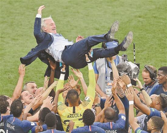 法国队夺得上届世界杯后将主教练德尚抛起庆祝 图/视觉中国