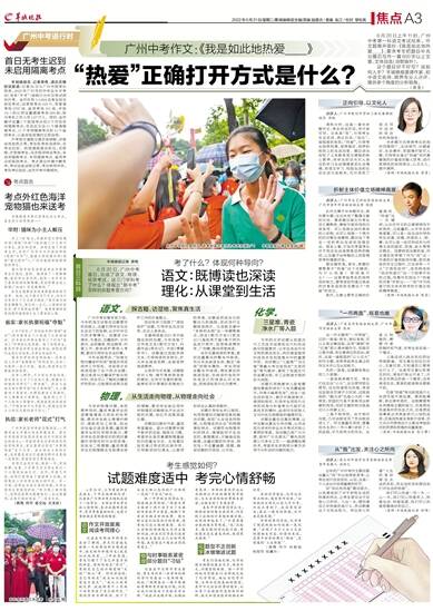 6月20日上午11时,广州中考第一科语文考试结束。作文题揭开面纱:《我是如此地热爱___》,要求考生把题目补充完整后写作一篇600字以上文章,文体自选(诗歌除外)。