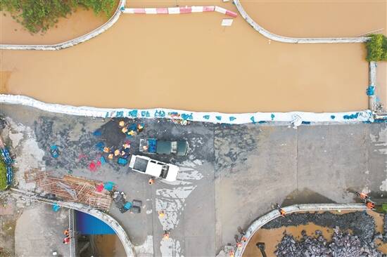 抢险人员在清远英德市英城街道加固防洪堤坝 羊城晚报记者 曾育文 摄