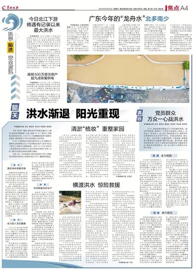 22日,清远英德市面临北江干流洪峰的考验。面对严峻险情,英德市广大党员干部坚持人民至上、生命至上、安全至上,全力投入到抢险救灾中,确保市民及两岸群众的生命财产安全。在清远清城区,受北江、潖江、大燕河等江河暴涨影响,飞来峡镇、源潭镇潖江蓄滞洪区也遭遇严重洪涝灾害。面对险情,清城区各级各部门党员干部组成的救援抢险力量挺身而出、奔赴抗洪抢险救灾一线,全力保护人民群众生命财产安全。