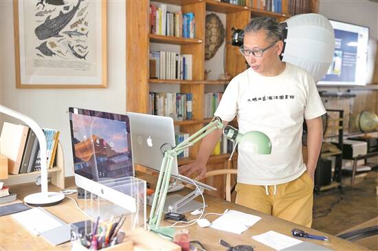 大鹏海洋图书馆馆长沈晓鸣 羊城晚报记者 王磊 摄