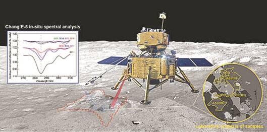 但中国研究团队提出,“嫦娥五号”月球样品是一类年轻玄武岩,胶结玻璃含量很少(不足16%),仅为阿波罗月球样品的1/3,由此估算“嫦娥五号”月壤样品中来自太阳风注入胶结玻璃形成的“水”不多于18ppm。他们认为,“嫦娥五号”着陆区月壤样品中外来撞击溅射物非常低,对“水”的贡献可以忽略,因此“嫦娥五号”月壤样品中肯定存在来源于月球内部的原生水。他们还发现了至少一种含水矿物——羟基磷灰石,证明了“嫦娥五号”月壤样品中存在来自岩浆结晶过程的“水”。