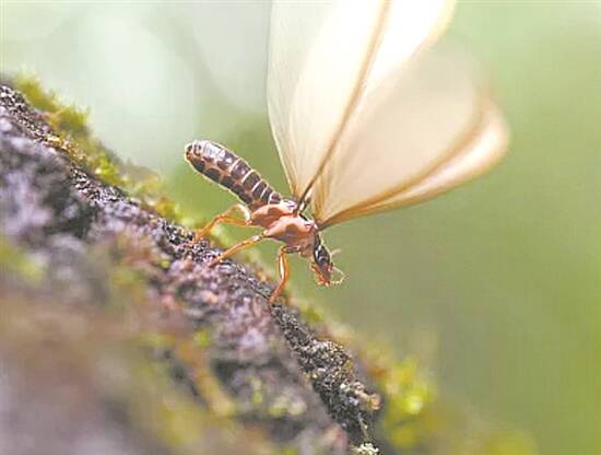 这些长了翅膀到处飞的小虫子正是白蚁的繁殖蚁。繁殖蚁成群结队出来聚会的行为,专业术语称之为“分飞”——就是白蚁们的“相亲大会”。