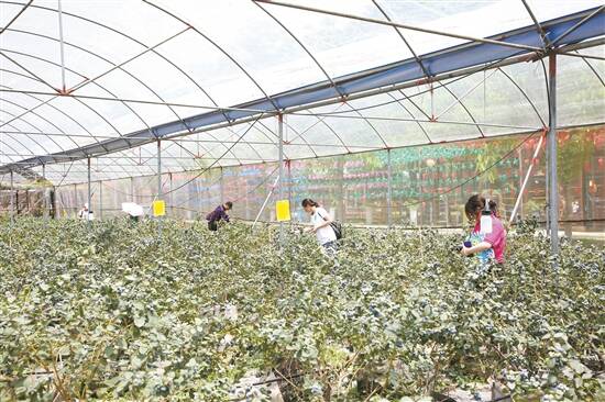 依靠特色水果种植实现增产增收、助推农业园不断发展壮大的还有东莞市麻涌创艺生态园老板袁万来。袁万来是麻涌本地人,经营着占地面积114亩的生态园,2018年,响应政府部门发展休闲观光农业号召,率先引进适合珠三角种植的南高丛系列品种蓝莓,实现了北果南种。