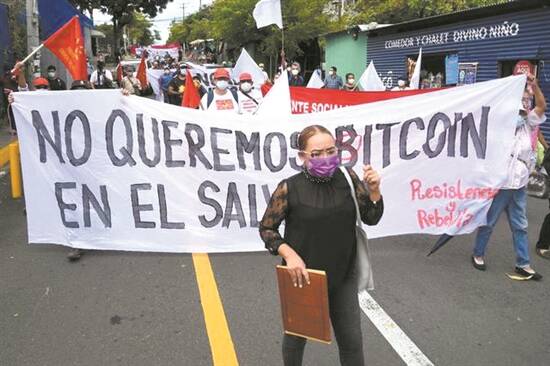 中美洲国家萨尔瓦多2019年将比特币作为法定货币,民众上街抗议(资料图) 图源:环球时报