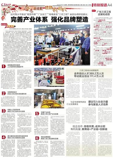 历经三个月的调研和座谈,调研组最终形成了一份凝聚智慧和汗水的调研报告,在这份名为《关于高水平推进“粤菜师傅”“广东技工”“南粤家政”三项工程 助力我省高质量发展的专题调研报告》里,不仅分析指出了当前广东存在的主要问题,还提出了针对性的意见和建议。