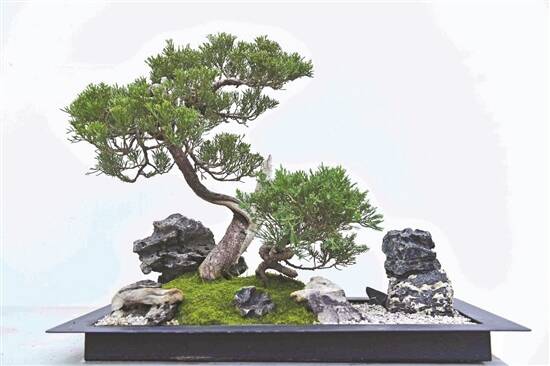 有别于传统大型盆景令人却步的昂贵价格,微景观盆景的定位就是大众化,真正做到让市民大众都看得起、买得起。微景观盆景融合园林设计艺术和中国山水画文化元素,以花草苗木为主,缀以山石等小件配置而成,造型玲珑别致,更注重整体艺术美的内涵,给人无限的艺术构思和审美情趣,犹如一座精美的“掌上园林”,实现了从庭院绿植到桌面艺术品的蝶变。
