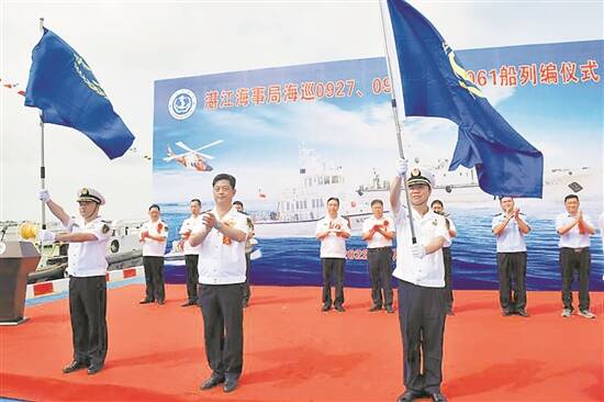 据介绍,3艘船列编后,湛江海事局共有9艘海巡船。列编当日,“海巡0927”船立即投入了湛江港湾联合巡航执法行动中。
