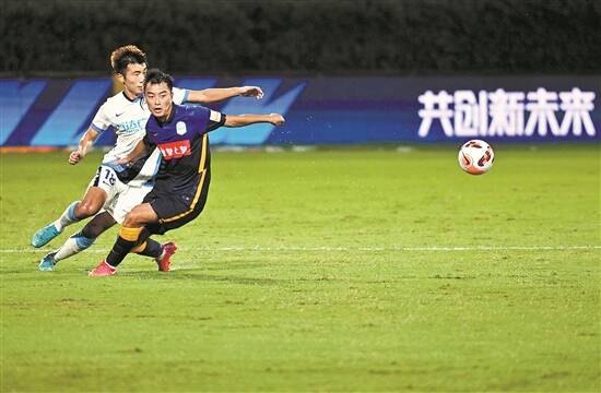广州城队球员范云龙(右)与大连人队球员何宇鹏拼抢 新华社发