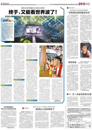 2022年7月1日/星期五/体育新闻部主编/责编 梁劲松 / 美编 黄国栋 / 校对 彭继业