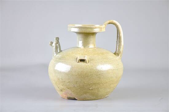 ▶唐 长沙窑青釉“君生我未生”瓷壶